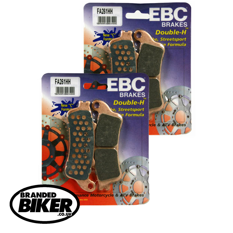 EBC Double-H Motorcycle Brake Pads, made in Cleveland U.S.A. are the world leaders in Motorcycle Brake Pads offering outstanding Brake performance in all weather conditions. EBC HH are Full Sintered Motorcycle Brake Pads made from Copper Alloys to give maximum stopping power without compromising longetivity and warm up time whilst giving extremely high resistance to brake fade making them ideally suited for road use. EBC HH Motorcycle Brake Pads are supplied with stainless steel backing plates, where appropriate, for Brake Calipers that do not have built in piston insulators to reduce heat transfer.