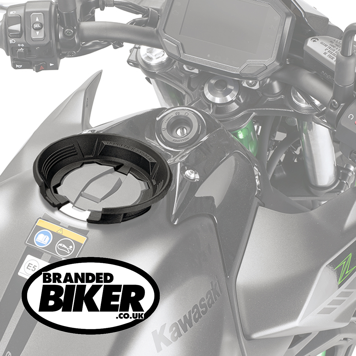 This Givi BF81 Tanklock Fitting for Kawasaki Z1100 2026 on models, or the Kawasaki Z1100 SE version, enables a variety of Givi Tanklock Tank Bags to be fitted and removed quickly and easily. The black plastic flange is designed to fit onto the original locking petrol cap using the original 4 screws. Instructions are included. Once fitted to the petrol tank a Givi Tanklock Tank Bag will sit slightly proud as not to mark or scratch the paintwork and to give easy access to the locking mechanism release button which is fitted to the underside of every Givi Tanklock Bag. All the necessary replacement fuel cap bolts, fittings and instructions and the mounting flange are provided within this Givi BF81 Fitting kit. As this system is locked in to position it negates the need for heavy magnets or multiple retaining straps, as fitted to more traditional tank bag systems, making it easier and lighter to carry. This Givi BF81 Tanklock Flange Fitting kit will enable a variety of Givi Motorcycle Tank Lock and Givi Tanklocked Tankbags to be fitted quickly and easily.