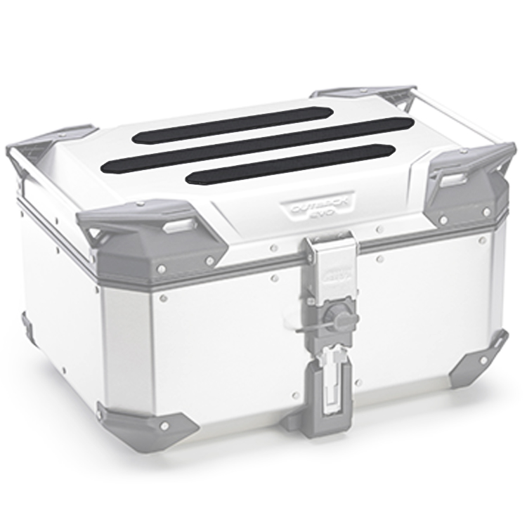 These Givi E237 Set of 3 Self Adhesive Protective Rubber Strips are designed to be fitted onto the upper Lid of a Givi OBKE58 Trekker Outback Evo or the Givi ALA56 Trekker Alaska Top Boxes. These 3 Strips offer additional Grip for Luggage being stowed on top as well as some additional protection against scratches. The 2 outer strips measure 280mm X 40mm and the centre strip measures 430mm X 40mm.