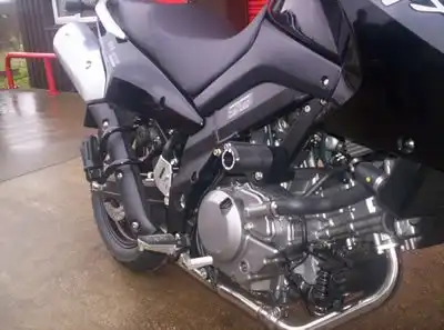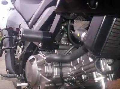 RG Crash Protectors for Suzuki DL 650 V Strom Motorcycles are bespoke Manufactured using de-embrittled high-tensile steel bolts ensures that the Crash Protectors bend on impact rather than to shear or snap. In addition, using compression sleeves inside the bobbins means that the retaining bolts can be torqued up without affecting the protectors and won’t work loose.